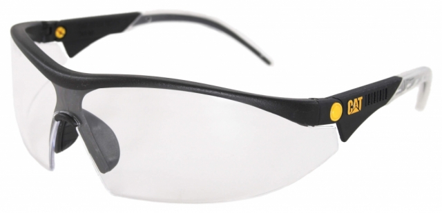 Cat apsauginiai akiniai – skaidrūs. Svoris: 26 g Rėmo medžiaga: nailonas. Lęšio medžiaga: polikarbonatas. Nosies kontaktas: polikarbonatas. Ausies kontaktas: polikarbonatas. Apsauga nuo rasojimo: taip. Apsauga nuo įbrėžimų: taip. Reguliuojamos sagos: 159 - 169 mm. Objektyvo specifikacijos: Reguliuojamas objektyvo kampas su fiksavimo mechanizmu. Vieno elemento objektyvas su 180 laipsnių žiūrėjimo kampu. 2 mm polikarbonatas, išbandytas atsparumas smūgiams. Skaidrus 1 klasės optinis lęšis, rekomenduojamas nuolatiniam nešiojimui. Anti-raso danga. Kieta danga iš abiejų pusių, apsauganti nuo įbrėžimų. Rėmo ypatybės: Apsauginė poliruoto nailono antakių apsauga. Reguliuojamos rankenos su keturiomis fiksavimo padėmis. Aukštą komfortą užtikrina PVC kompozitas. PVC nosies dalis, suformuota patogumui.